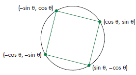 We also are asked to rotate our matrix which is done by multiplication of each of the points by a rotation matrix seen below in where: $$\theta = \frac{\pi}{4}$$ :